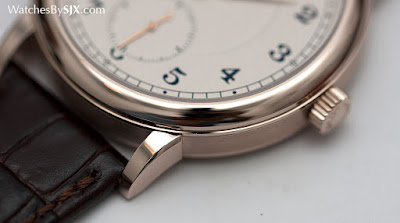 die früher im Jahr eingeführt wurde, was es ziemlich teuer für eine Zeit-Gold-Armbanduhr macht. Obwohl sich der Fallmaterial unterscheidet, sind die Gehäuseabmessungen genau die gleiche wie die Platinausgabe. Es ist 40mm im Durchmesser, mit einem kleinen Schritt an der Basis der Blende, ein Merkmal, das langsam wird immer Standard auf der 1815. Obwohl ein kleines Detail, der Schritt dient dazu, die Uhr mehr visuelle Tiefe geben, und auch die Lünette scheinen kleiner.