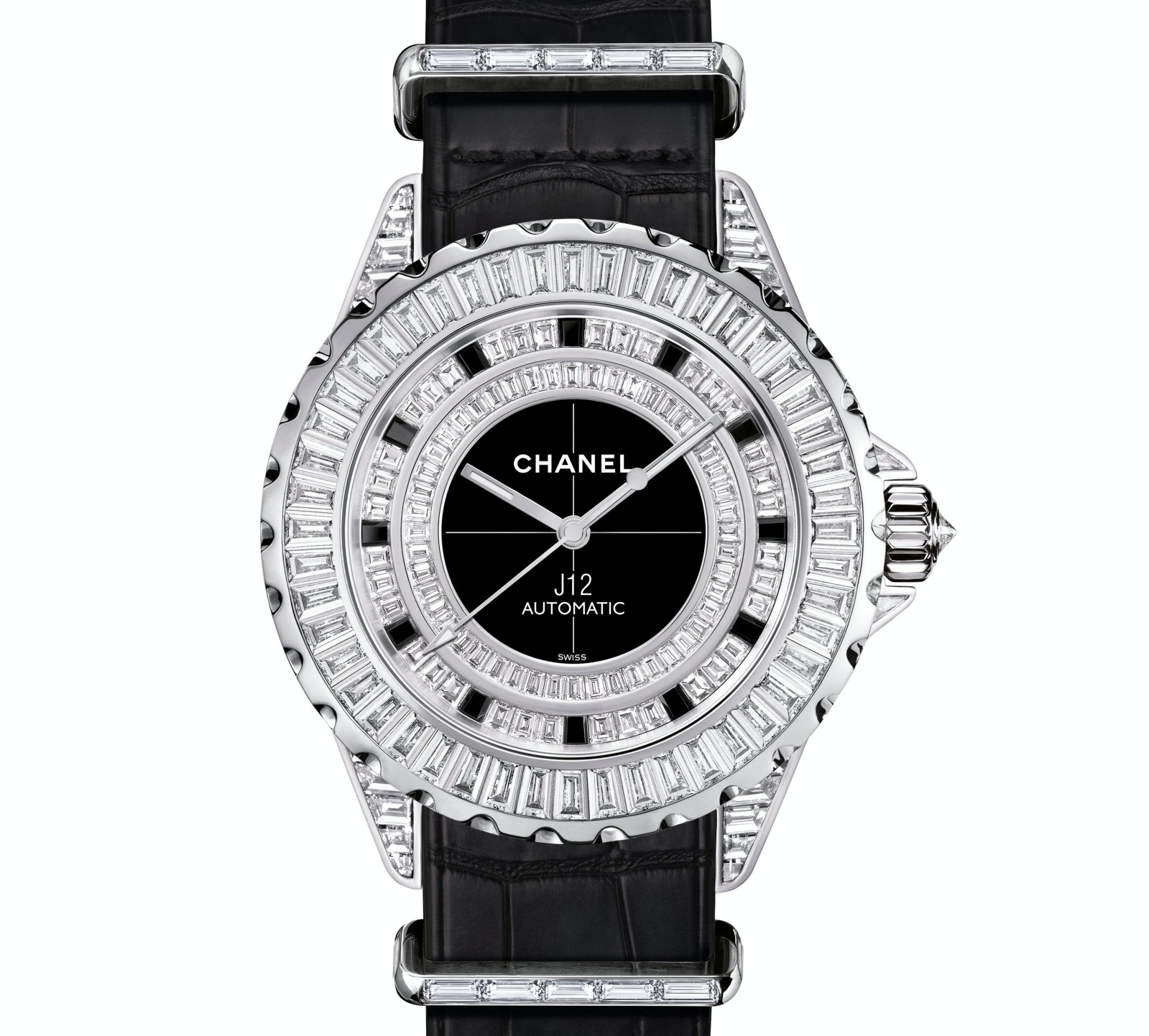 Auch bekannt als die G10-Riemen nach der britischen militärischen Anforderung Form verwendet, um sie zu bestellen (wir erklären die Geschichte der NATO-Gurt hier ), wurde die NATO-Band wurde einige Zeit in den siebziger Jahren entwickelt. Seine Besonderheit ist die doppelte Schicht der Leinwand unter der Uhr, die die Uhr bleibt auf dem Handgelenk, auch wenn eine Feder Bar bricht sorgt. Und diese doppelte Schicht fügt Dicke und Masse der Uhr hinzu und gibt ihm ein sportlicheres Aussehen. Ursprünglich aus wärmeversiegeltem Segeltuch mit verchromten Messingringen, ist der NATO-Riemen, wie er von Chanel vorgestellt wird, in handgenähtem Alligator mit Diamantsatzschlaufen.