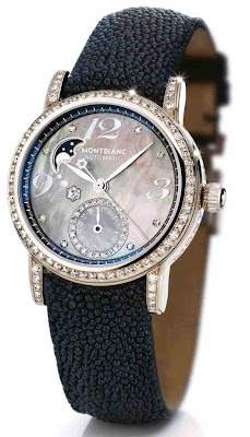 Für alle, die sich mehr vom magischen Glanz dunkler Saphire hingezogen fühlen, hat Montblanc ein farbiges Pendant mit 148 schwarzen Saphiren auf weißem Perlmuttzifferblatt und einem Band aus weißem, glänzendem Satin geschaffen. Als Krönung beider Modelle schmückt sich ein weiterer Diamant im eleganten Wickelknopf stilvoll: der Montblanc Diamond. Mit 43 Facetten in Form eines glitzernden Montblanc-Sterns, symbolisiert es die höchste Handwerkskunst, die die Marke seit einem Jahrhundert pflegen und die durch raffiniertere Techniken ständig bereichert wurde.Bitte sehen uhr replica oder Schweizer rolex